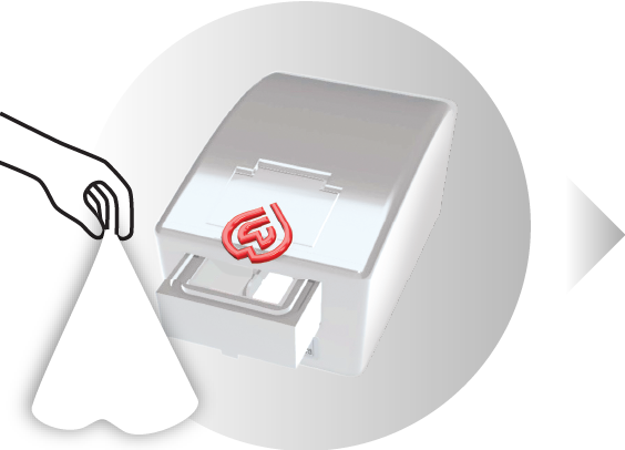 Lift up the logo lever and drop in a blister pack of 2 compressed wipes.